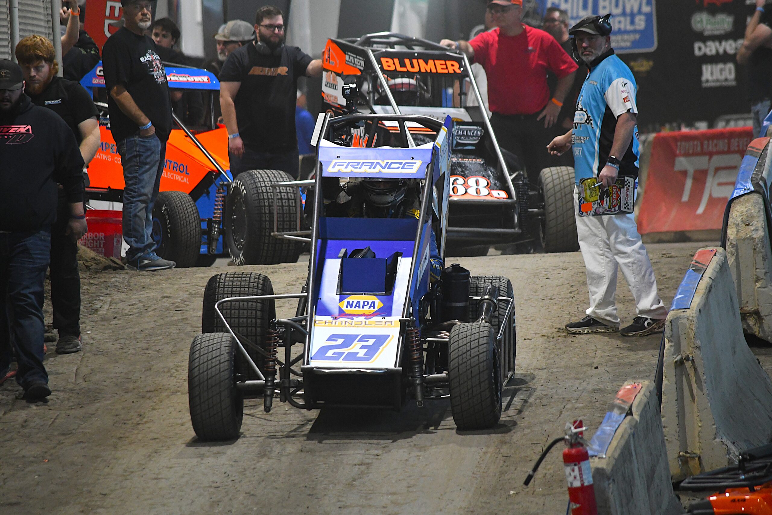 With the reserve grid race in place, the #22 NAPA truck lined up in sixth place in Division Two. However, as the rolling start begun, a first-corner incident brought the race to a halt, causing a full restart.