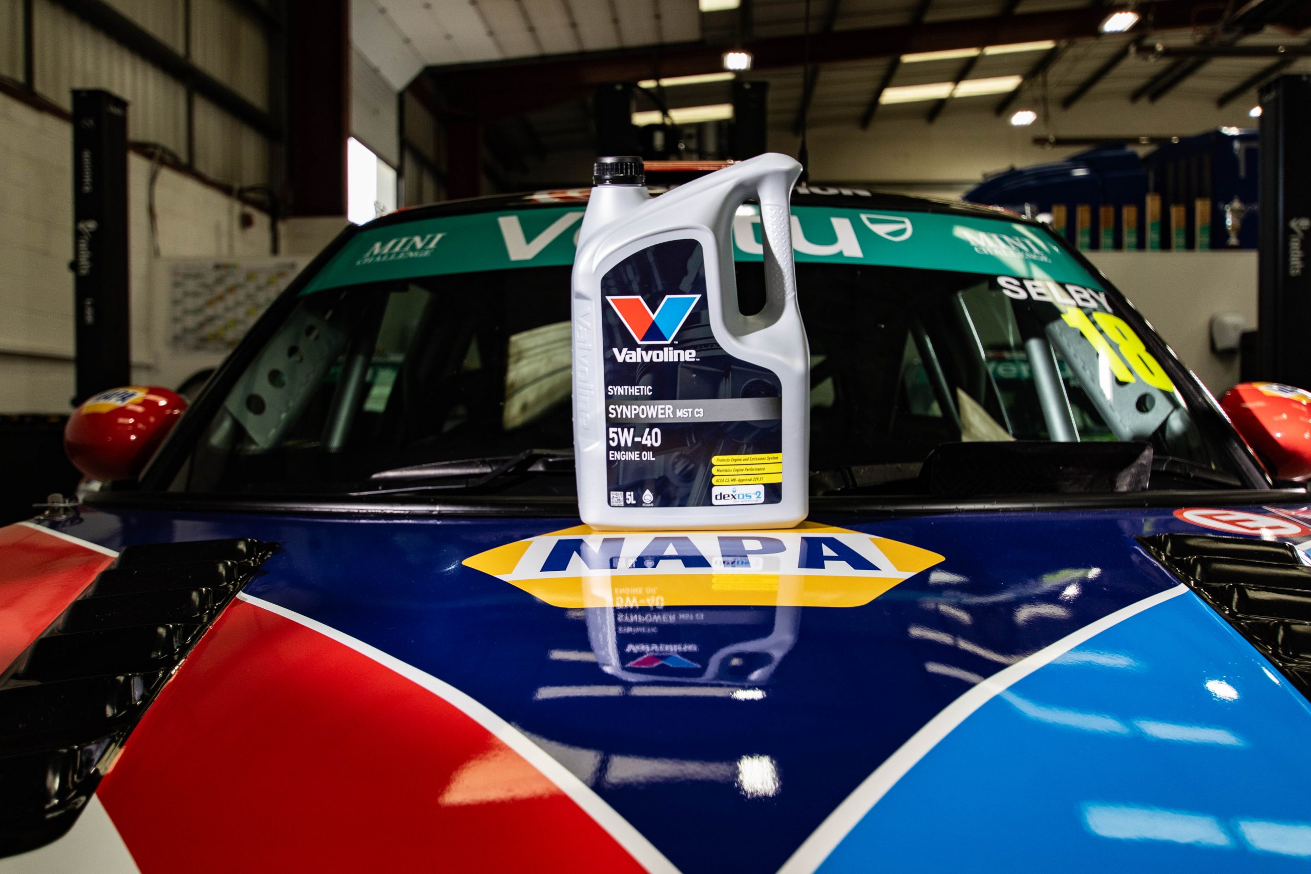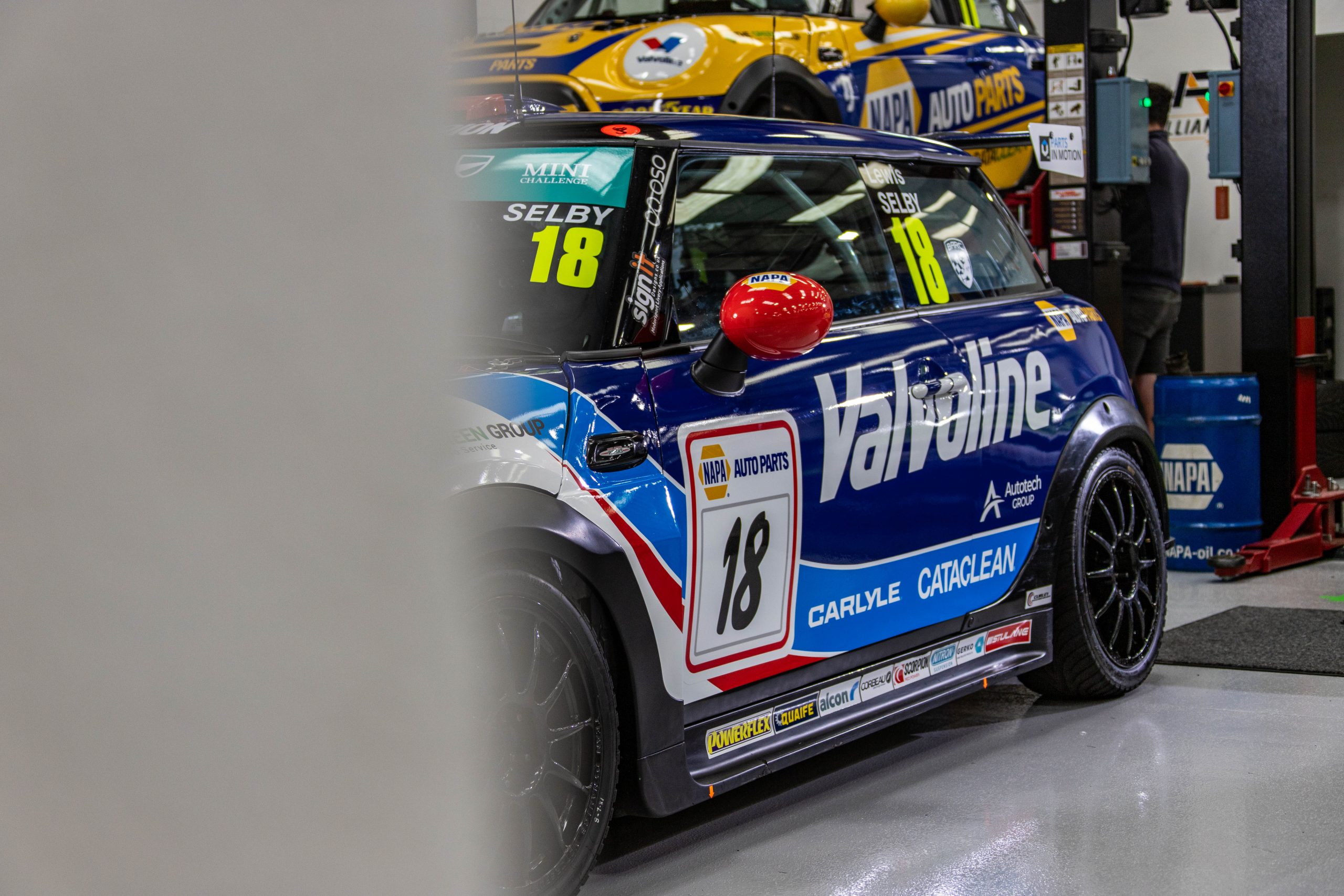 At Silverstone, NAPA Racing UK continues to celebrate its partnership with Valvoline, this time with MINI Challenge JCW driver, Lewis Selby